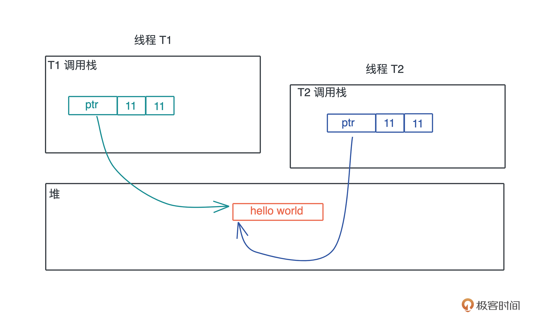 堆可以存入大小未知或者动态伸缩的数据类型。堆上存储的变量,其生命周期从分配后开始,一直到释放时才结束,因此堆上的变量允许在多个调用栈之间引用。但也导致堆变量的管理非常复杂,手工管理会引发很多内存安全性问题,而自动管理,无论是 GC 还是 ARC,都有性能损耗和其它问题。