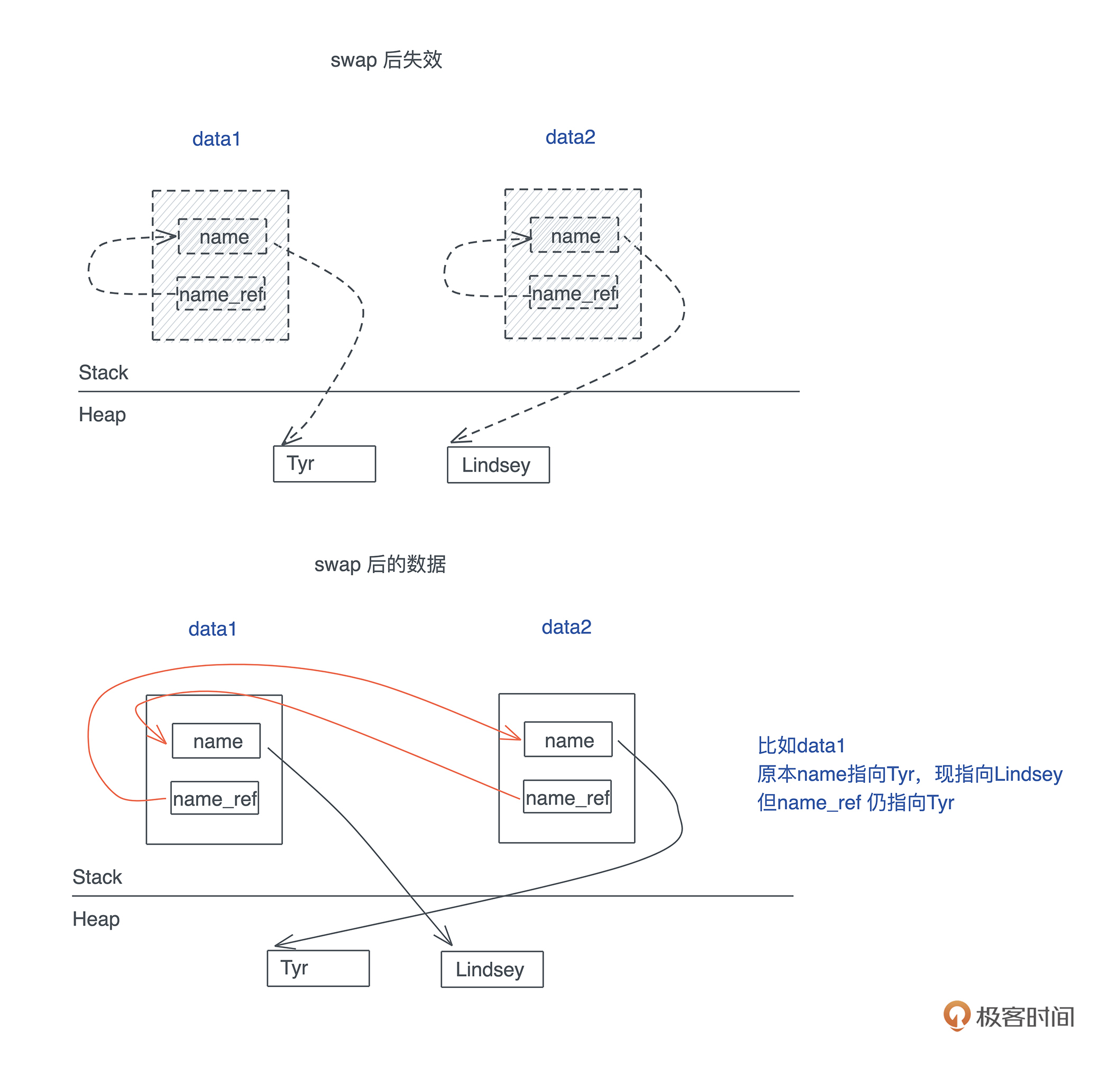由于数据结构被包裹在 Pin 内部,所以在函数间传递时,变化的只是指向 data 的 Pin: