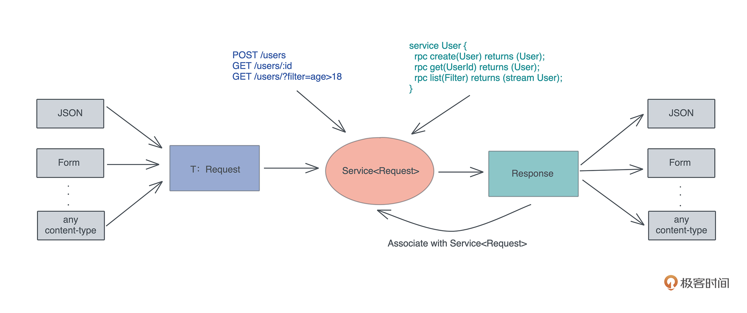 还记得当时写get hands dirty系列时,说我们在后面讲到具体知识点会再回顾么。你可以再回去看看(第5讲)在Thumbor图片服务器中定义的 Engine / SpecTransform,以及(第6讲)在SQL查询工具query中定义的 Fetch / Load,想想它们的作用以及给架构带来的好处。