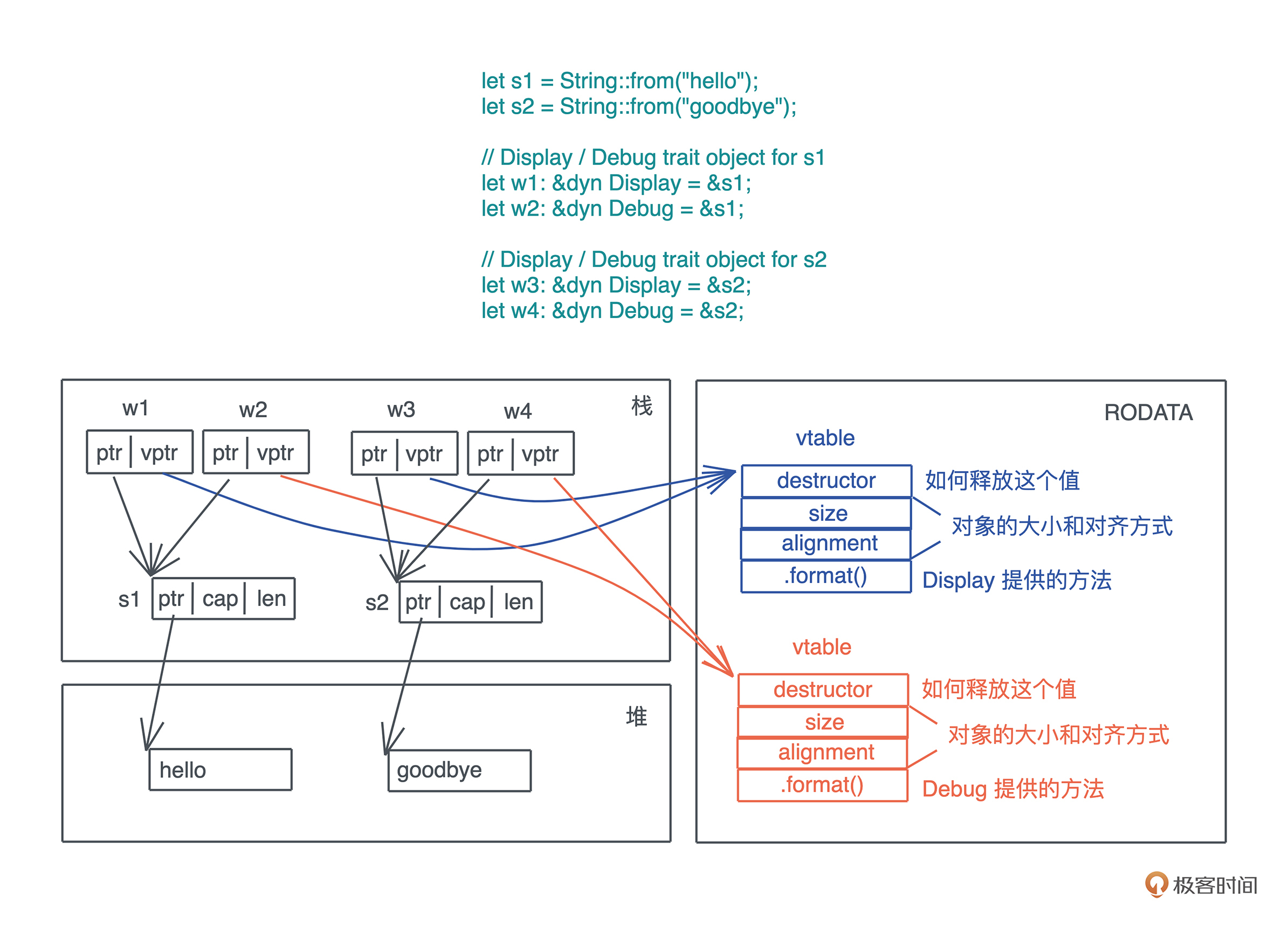 // trait object(s / Debug) 的 ptr 地址和 vtable 地址