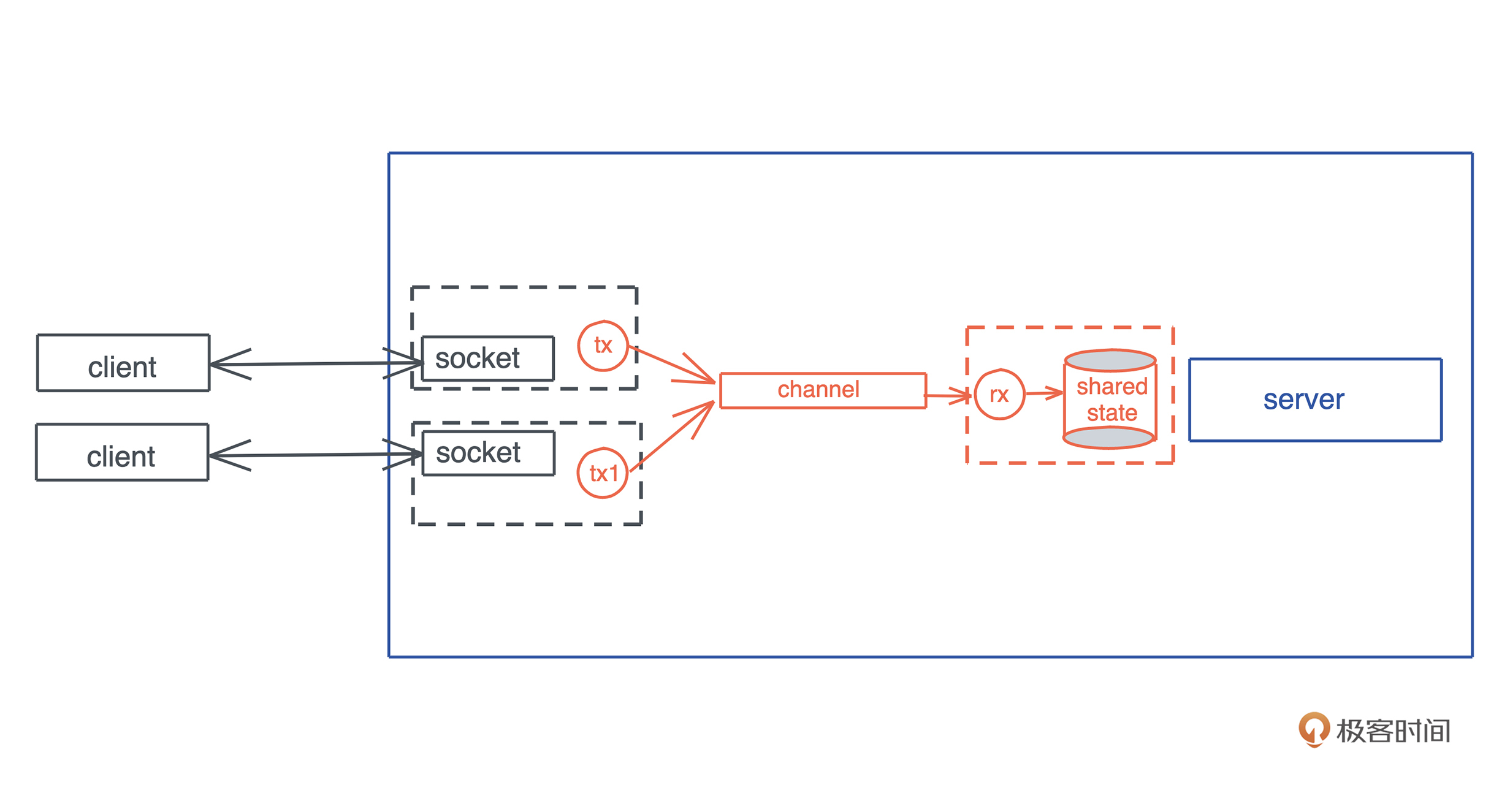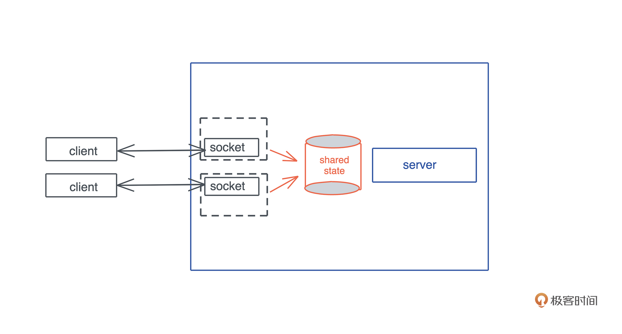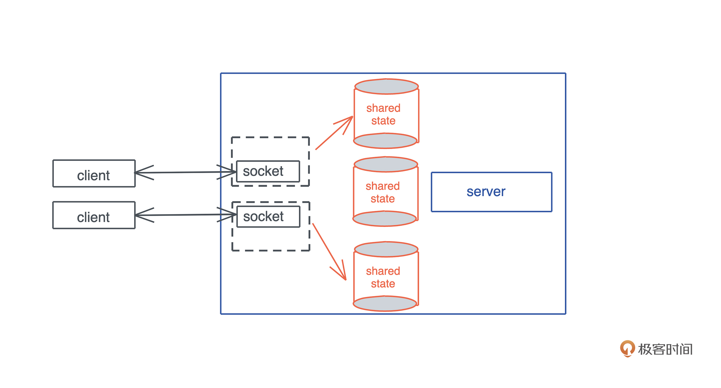 第二个问题,在构建服务器时,我们总会有一些共享的状态供所有的连接使用,比如数据库连接。对于这样的场景,如果共享数据不需要修改,我们可以考虑使用 Arc