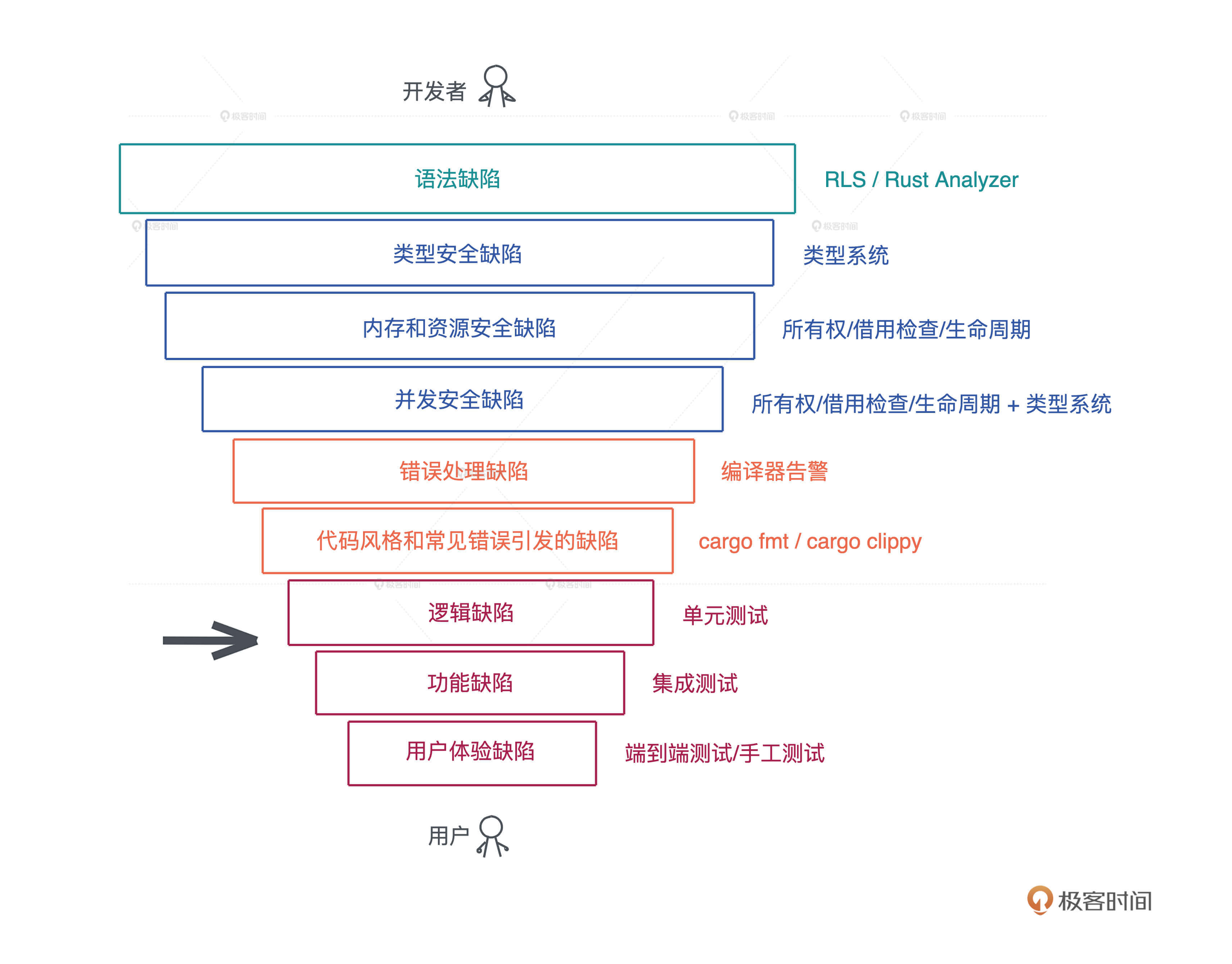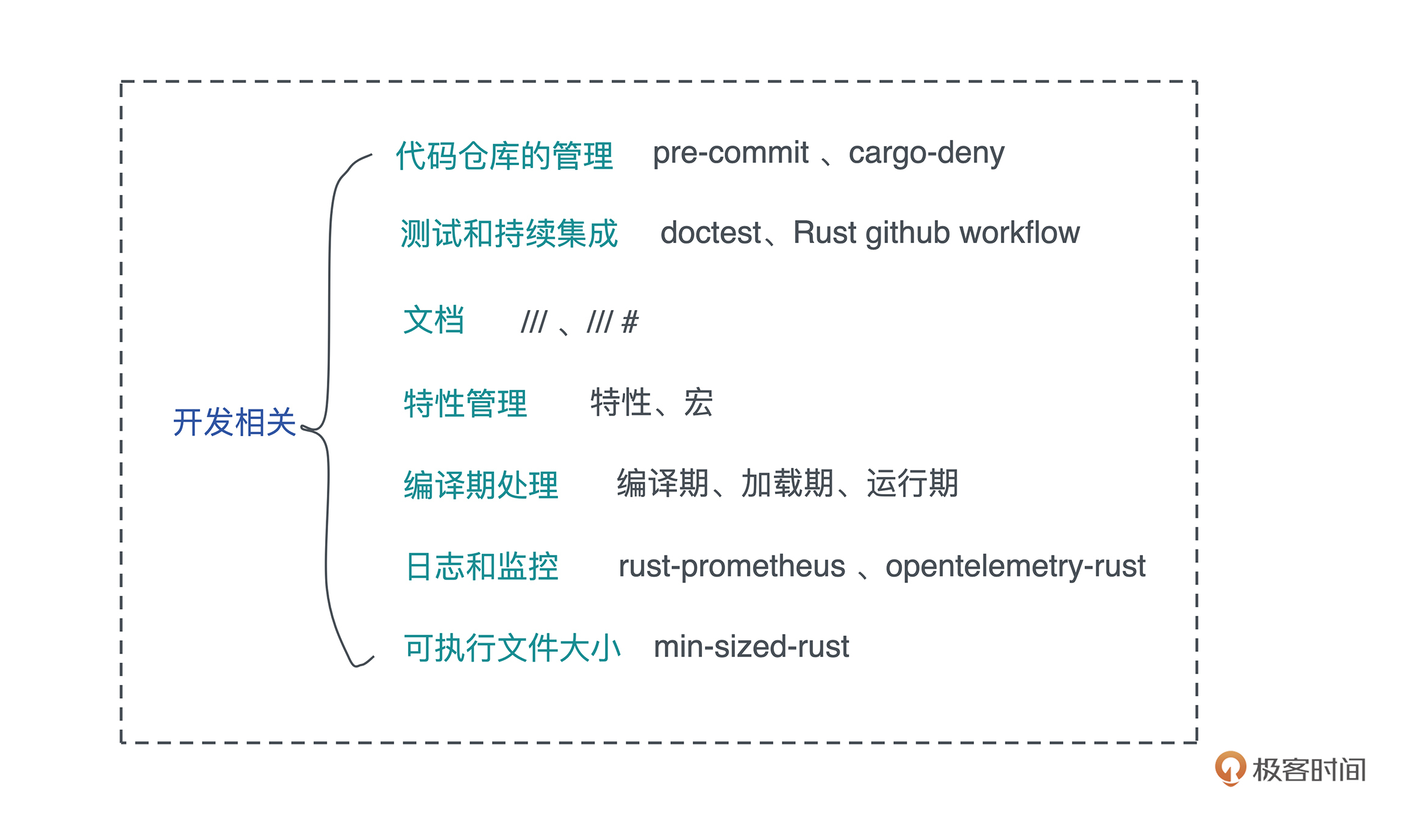 整个专栏,我会把内容尽量写得通俗易懂,并把各个知识点类比到不同的语言中,力求让你理解 Rust 繁多概念背后的设计逻辑。每一讲我都会画出重点,理清知识脉络,再通过一个个循序渐进的实操项目,让你把各个知识点融会贯通。