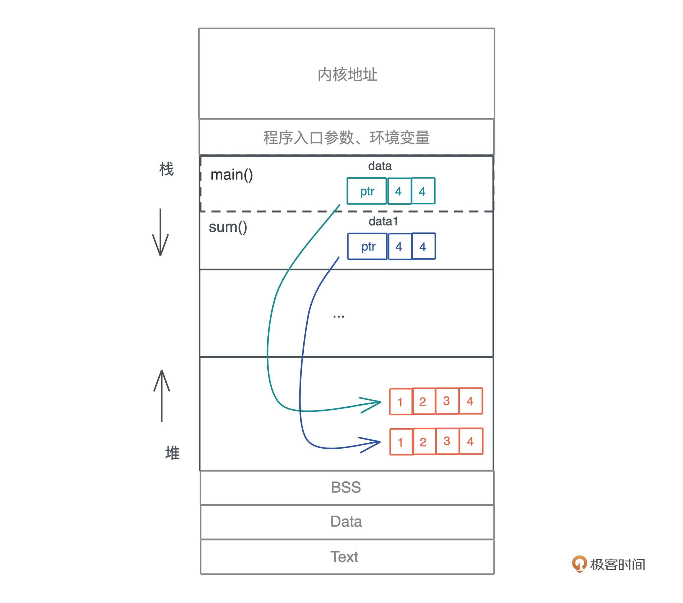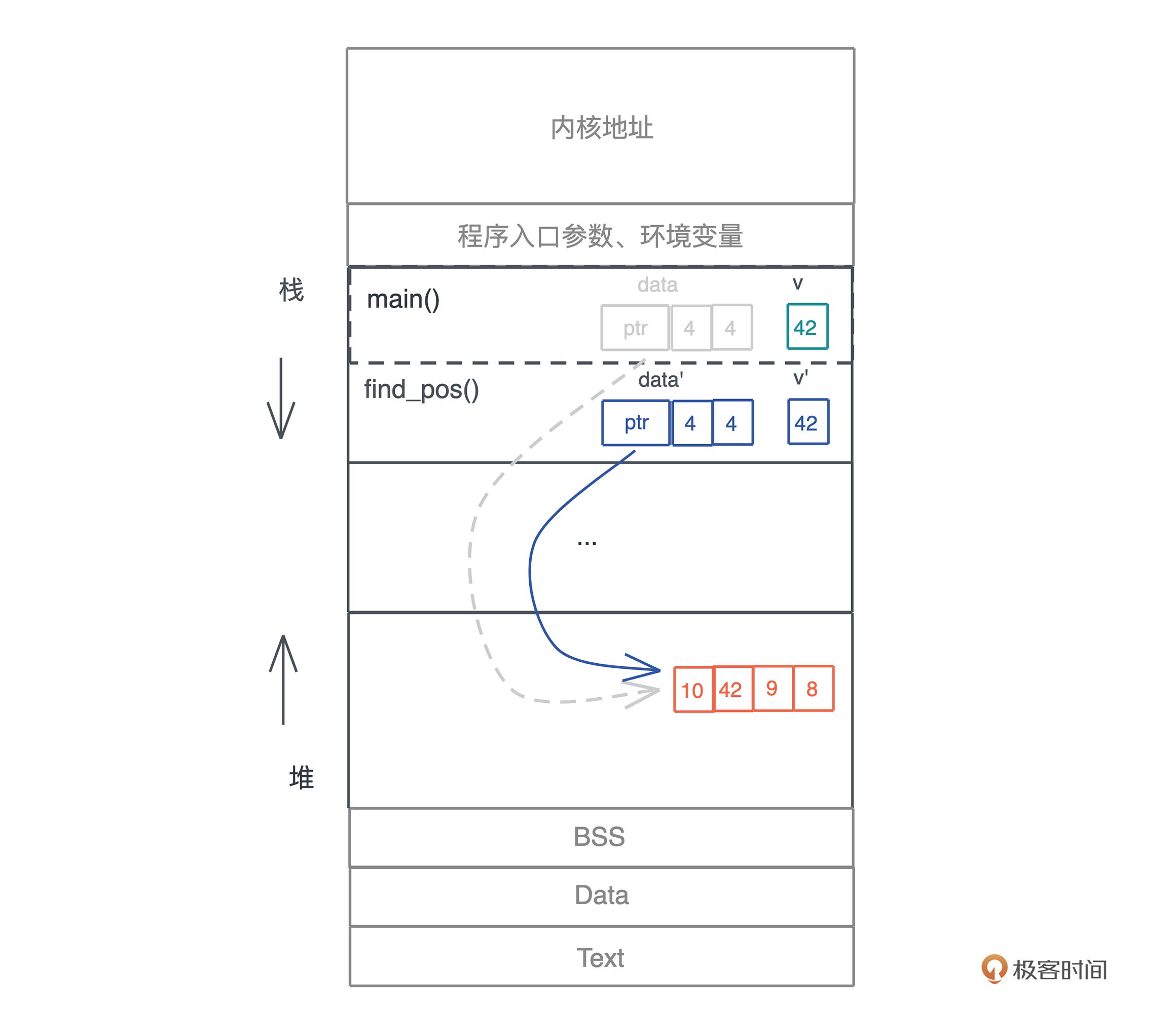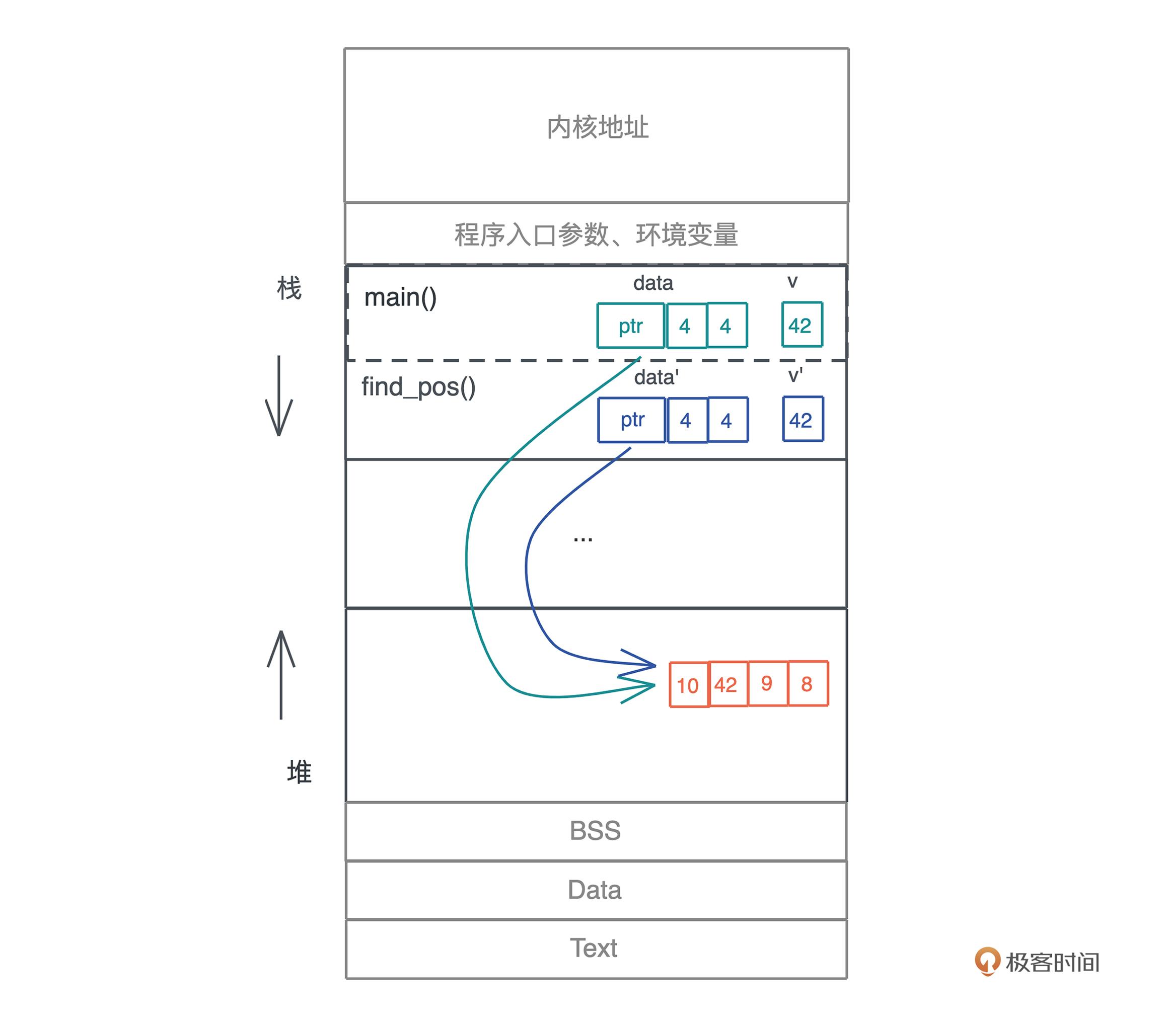 这些虽然对,但并没有抓到实质。如果你在工作中只背规则套公式,一遇到特殊情况就容易懵,但是如果明白公式背后的推导逻辑,即使忘了,也很快能通过简单思考找到答案,所以接下来我们深挖堆和栈的设计原理,看看它们到底是如何工作的。