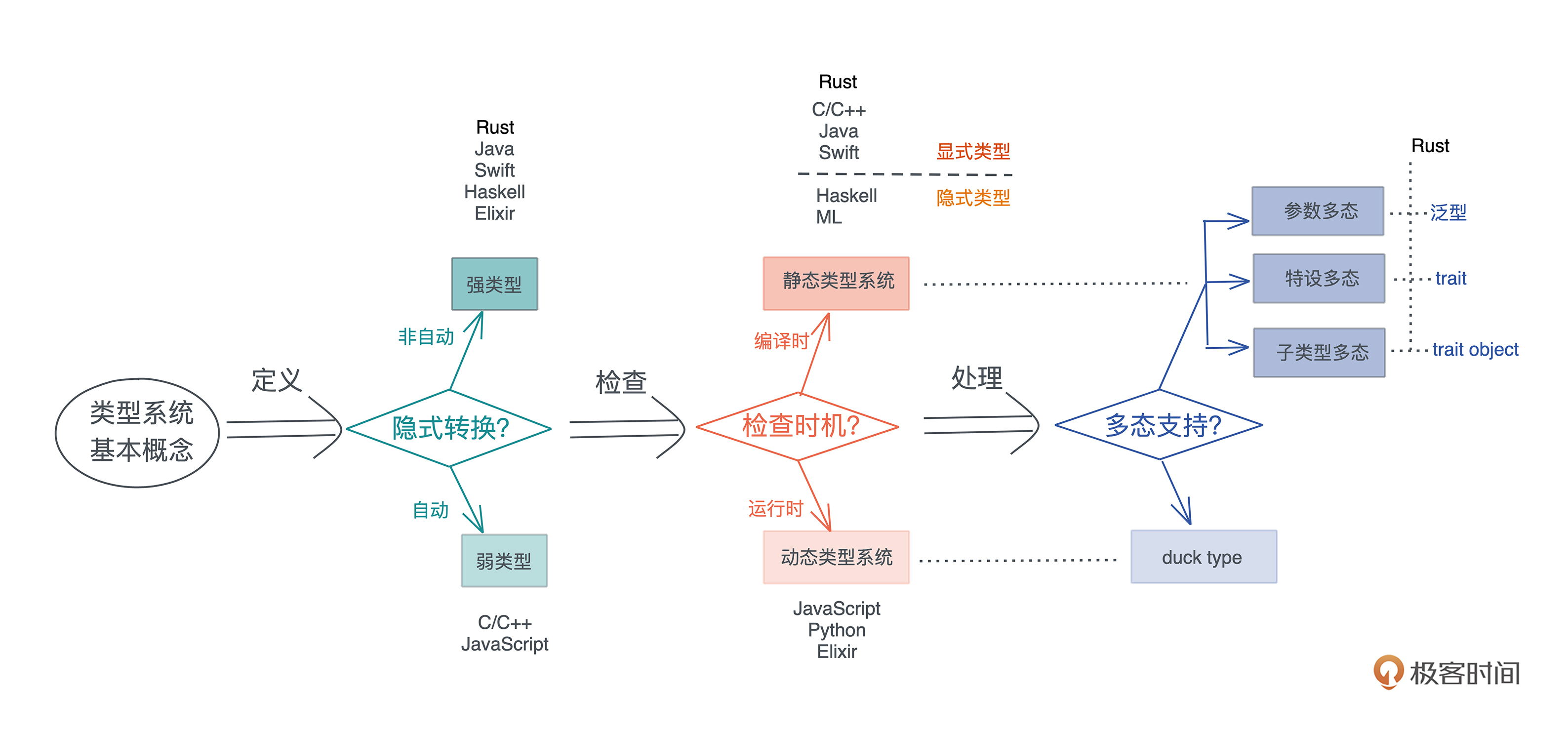 在 Rust 里,你可以使用 Trait 做接口设计、使用泛型做编译期多态、使用 Trait Object 做运行时多态。在你的代码里用好 Trait 和泛型,可以非常高效地解决复杂的问题。