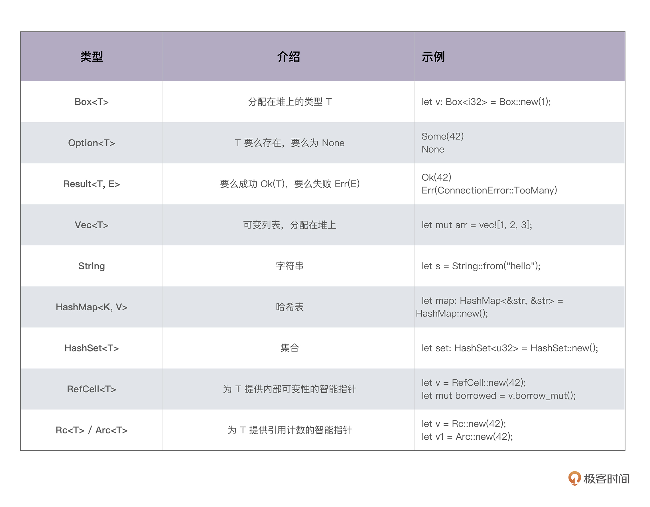 在具体写代码的时候,你可以多举一反三,不必局限于我给的例子,可以想想工作生活中的产品场景,思考如何用 Rust 来实现。